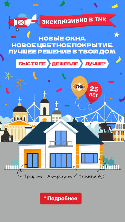 За более чем 20 лет работы на рынке группа компаний «ТМК» заняла лидирующие позиции среди производителей изделий из алюминия, ПВХ и металлоконструкций в Тамбове и по всей России. Успех нашей компании базируется на корпоративной философии, которой мы следуем в ежедневной деятельности. Клиенты в Тамбове высоко ценят наши ключевые преимущества: развитую сеть офисов по всей территории России, масштабное производство и высококачественные, но доступные по цене пластиковые окна.